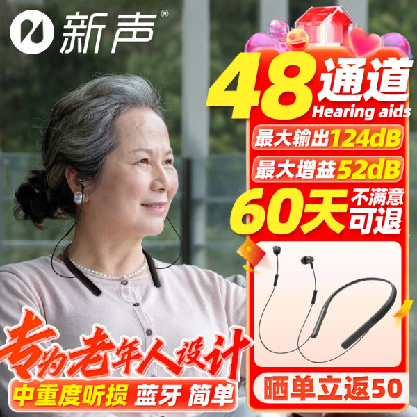 新声助听器老年人年轻人耳聋耳背智能降噪围脖耳机充电隐形耳蜗式轻中重度免调试