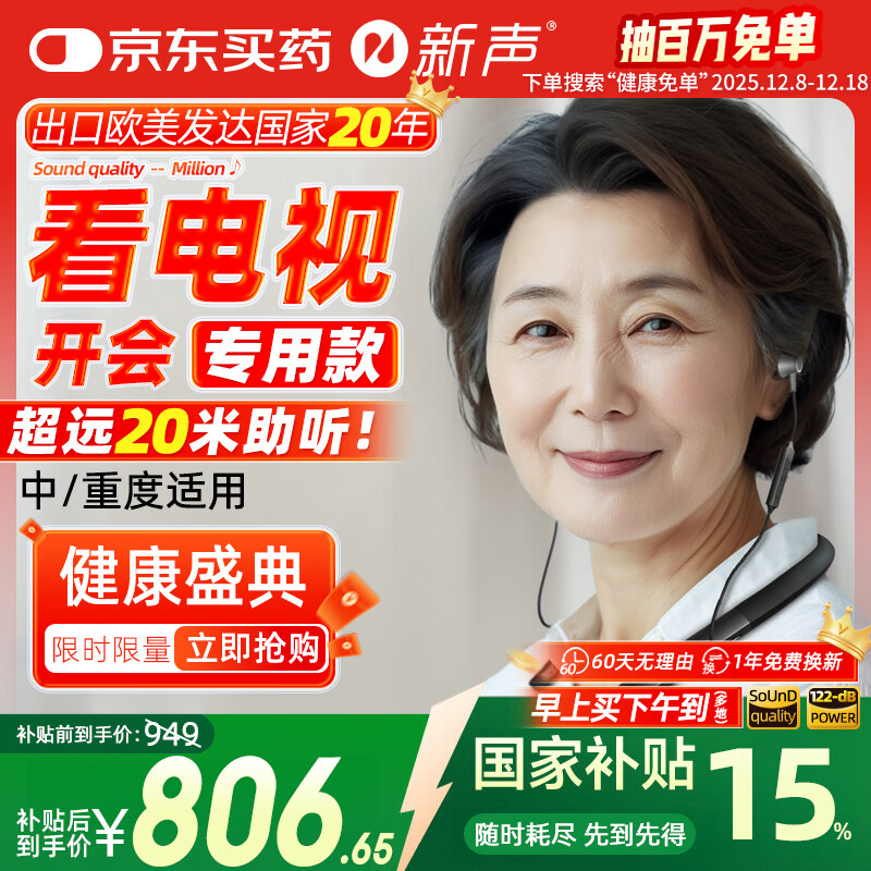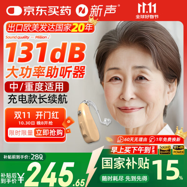 新声耳背式助听器老年人中度重度耳聋耳背隐形充电大功率长续航