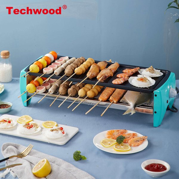 Techwood 电烧烤炉家用烧烤烤肉机无烟电烤炉烤串烧烤架烤肉炉烤肉盘电烤盘