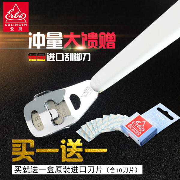 爱贝(Erbe)德国刮脚刀脚后跟削脚皮刮刀修脚刀具磨脚去死皮老茧 象牙白(23年) 加购赠刀片 10片装