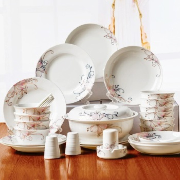 剑林 景德镇陶瓷 56头韩式餐具套装 花语秋芙(品锅版)