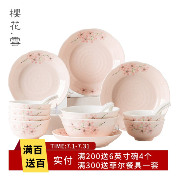 剑林家用日式创意陶瓷碗碟套装平盘子樱花网红餐具碗盘送礼组合