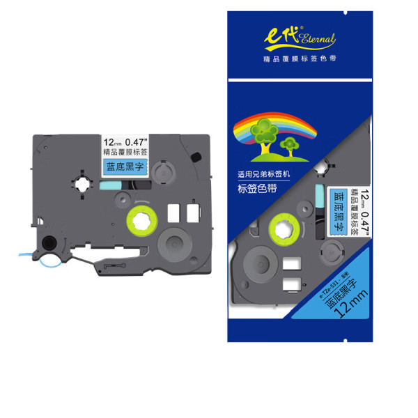 e代 eternal 标签带 适用兄弟标签机色带 标签打印纸PT-D210标签机 12mm不干胶标签纸 蓝底黑字 12MM*8M