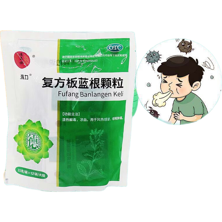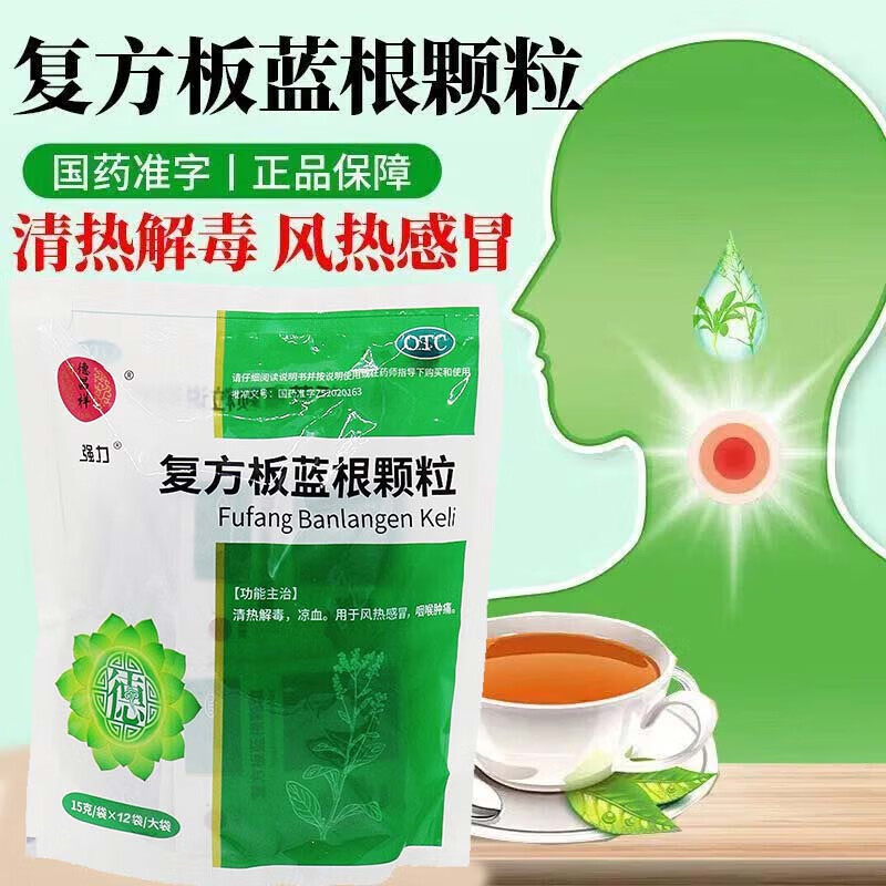 [强力]复方板蓝根颗粒 15g*12袋 1盒装 清热解毒去火排毒嗓子疼咽喉肿痛风热感冒凉茶冲剂 流行性感冒药凉血解毒消炎去火 1包装