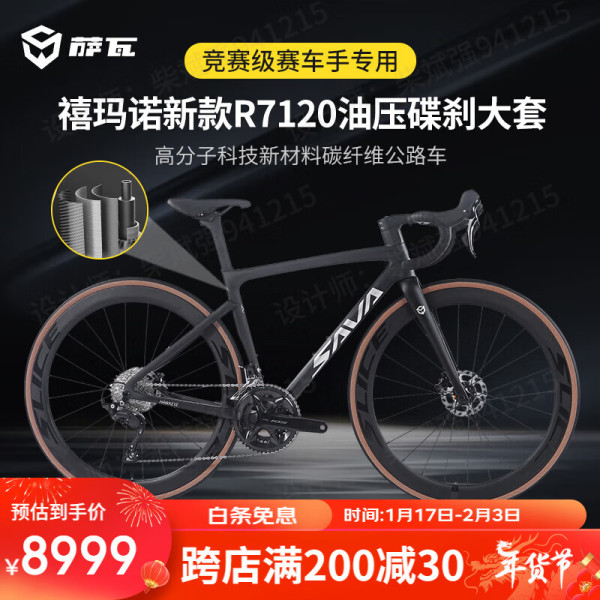 萨瓦SAVA全碳纤维高端公路自行车超快超轻禧玛诺C7-7170电子变速 竞速级 黑色【20周年回馈升级版】