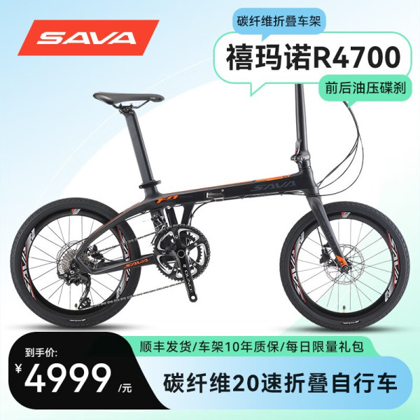 SAVA萨瓦超轻碳纤维折叠自行车喜玛诺变速油刹代驾城市通勤20寸折叠车 20速4700变速黑橙