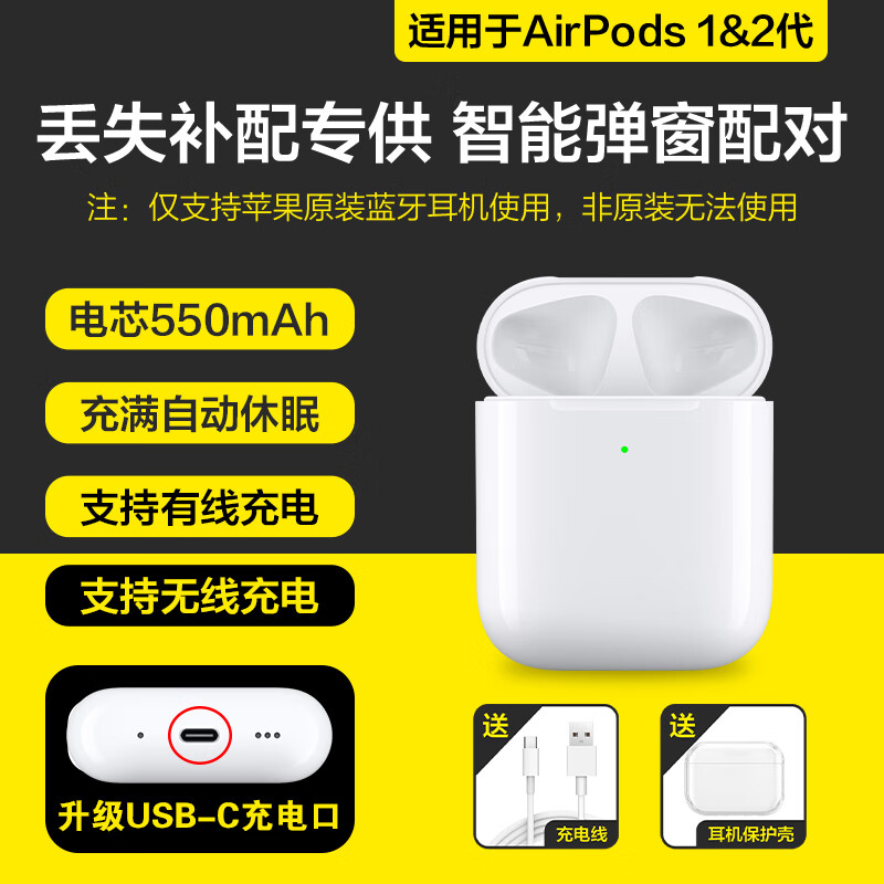 FEATHER适配苹果AirPods Pro2代充电仓4代C口无线蓝牙耳机丢失补配1/3代电池盒子ipods匹配一三代单只补配 AirPods1/2代充电仓-高配【USB-C口】