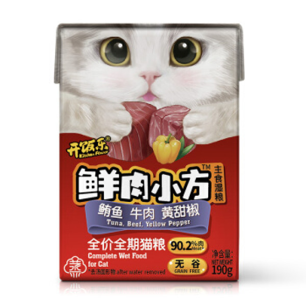 开饭乐 Kitchen Flavor鲜肉小方 猫粮湿粮 鲔鱼牛肉黄甜椒 全价全期猫粮主食湿粮190g