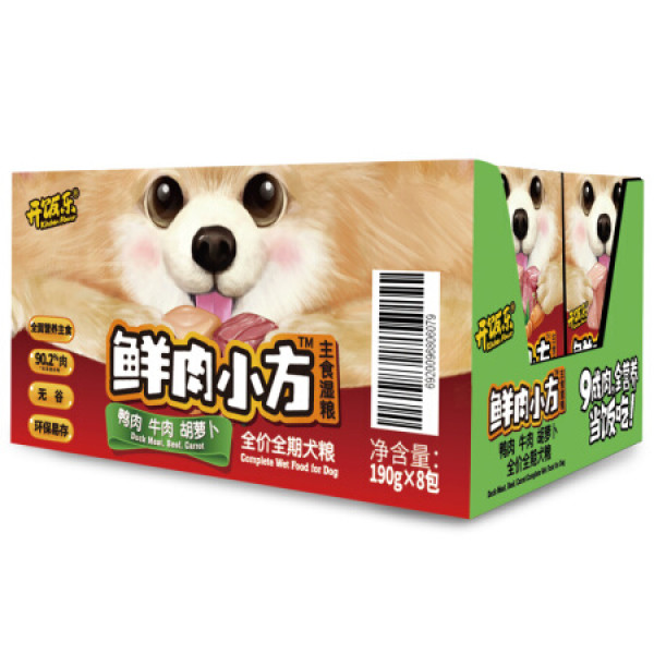 开饭乐 Kitchen Flavor鲜肉小方狗粮湿粮 鸭肉牛肉胡萝卜 全价全期犬主食湿粮190g×8