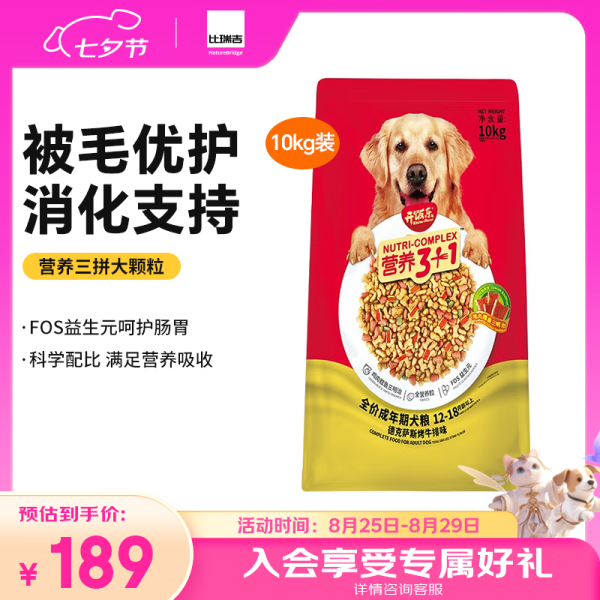开饭乐 Kitchen Flavor 狗粮 营养3+1鳕鱼片牛排味成年期犬粮10kg拼粮 添加大块肉粒