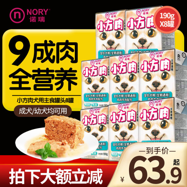 开饭乐 Kitchen Flavor 诺瑞(NORY)鲜肉小方狗狗主食湿粮罐头 小型犬泰迪柯基金毛大型犬全期狗粮 鸡肉牛肉全期配方190g*8