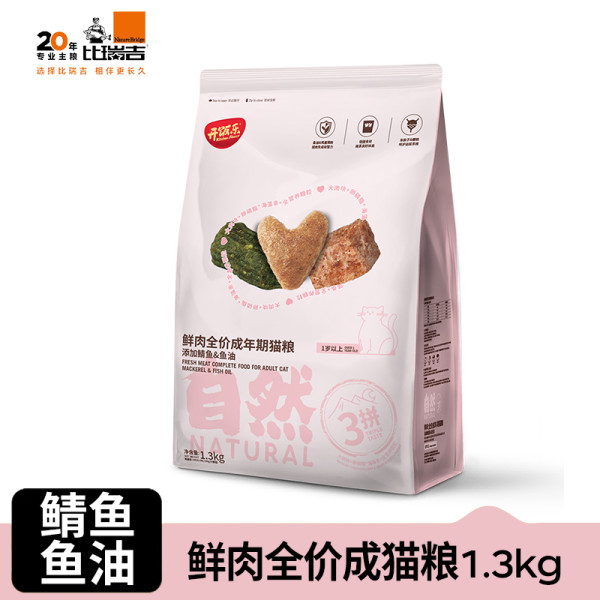 比瑞吉开饭乐自然3拼鲜肉猫粮添加鲭鱼三文鱼鱼油全价成年期主粮