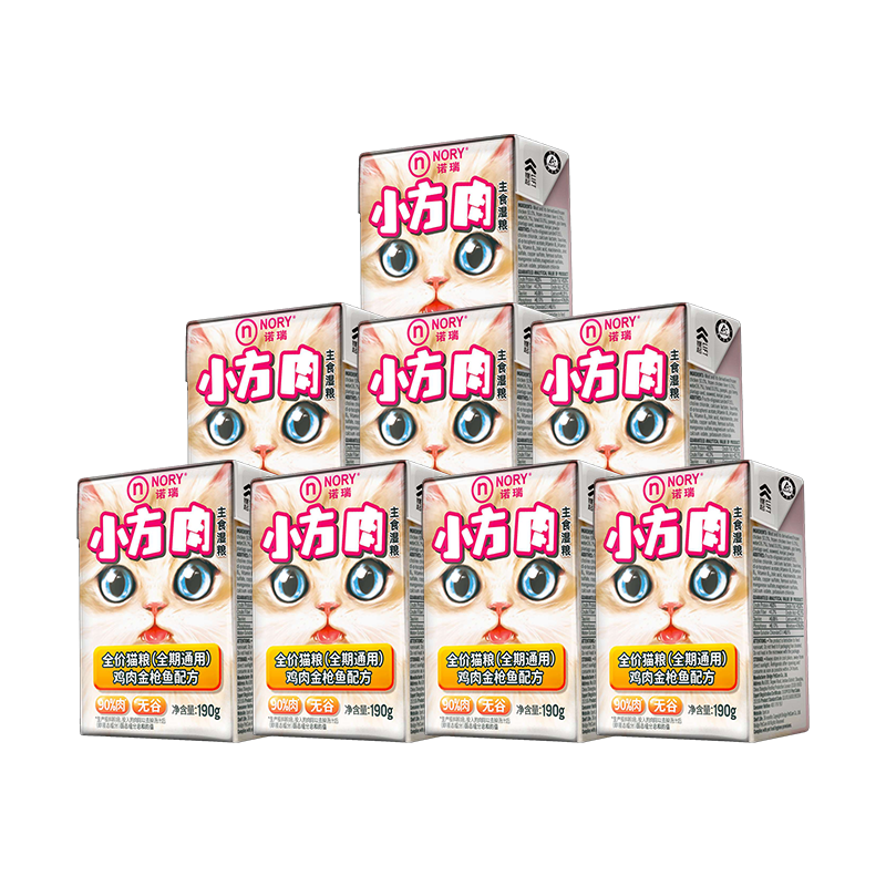 开饭乐鲜肉小方 猫主食猫湿粮猫罐头猫零食全价猫粮整8盒装 诺瑞鸡肉 金枪鱼全期190gx8盒