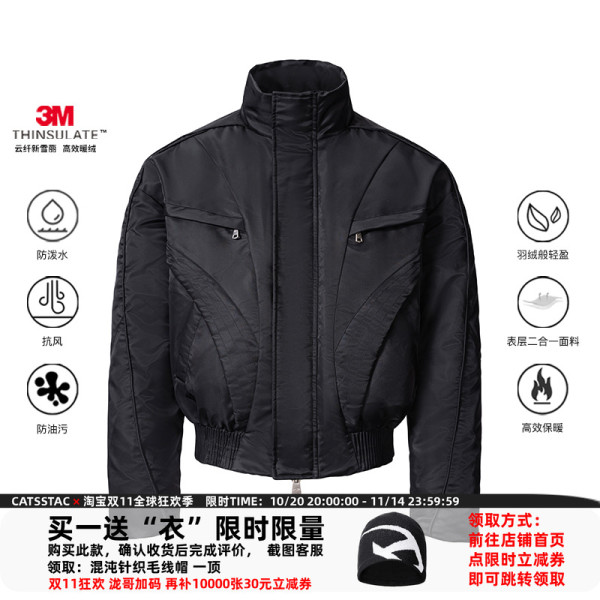 CATSSTAC 3M新雪丽飞片立领棉服cleanfit 冬季锁温保暖 防寒抗冻