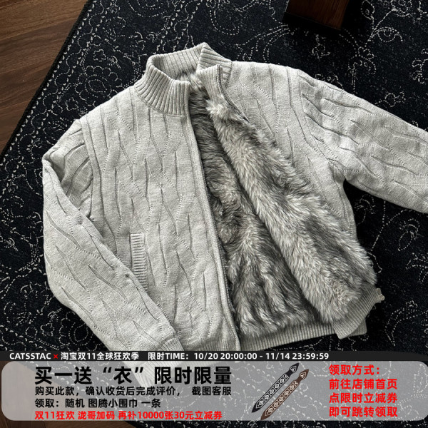 CATSSTAC 荆棘绞花毛衣雕 秋冬保暖 立领设计 双开拉链 轻奢质感