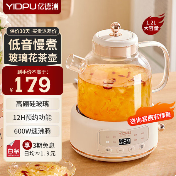 亿德浦 YIDPU 全玻璃养生壶- 1.5L 大容量破价