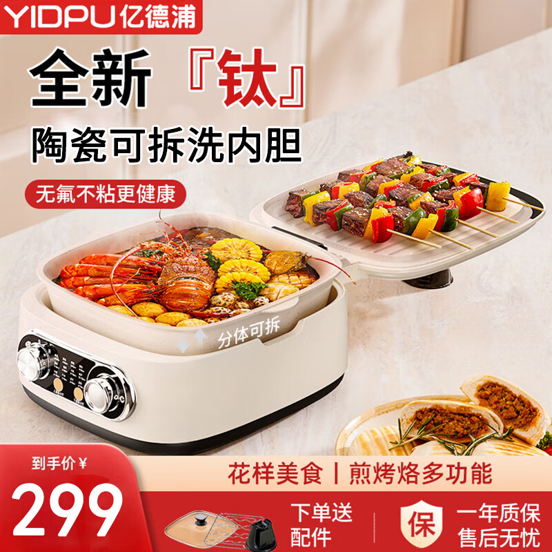 亿德浦 电饼铛可拆洗家用多功能早餐机加深烤盘双面加热小型电火锅电饼锅悬浮式煎烤烙饼锅薄饼机 【2025新款】可拆洗内胆【独立温控 单双盘切换】