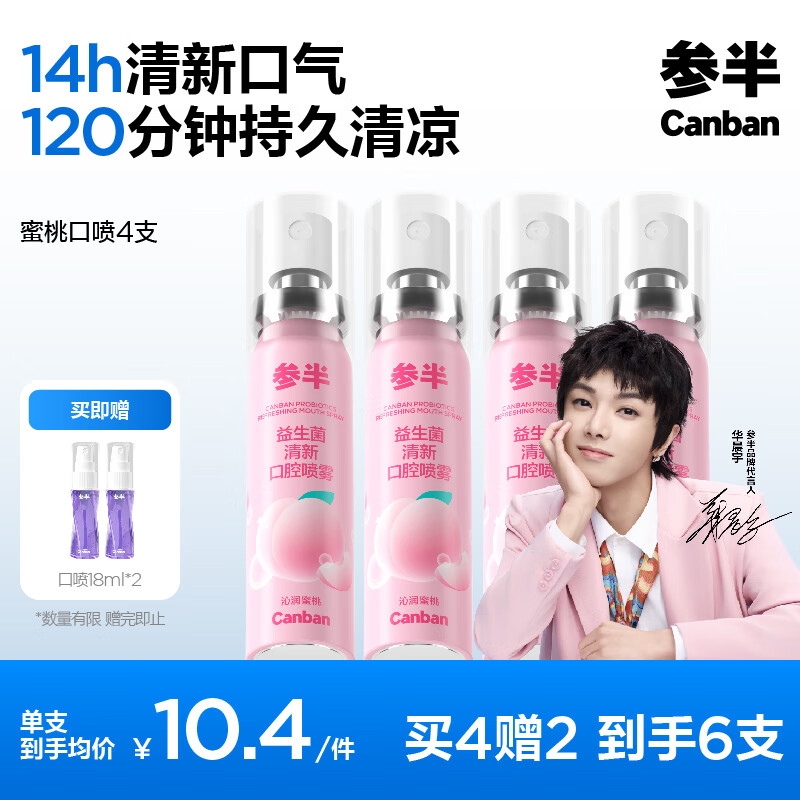 参半多效清新口气清新剂口喷口腔喷雾 蜜桃4支