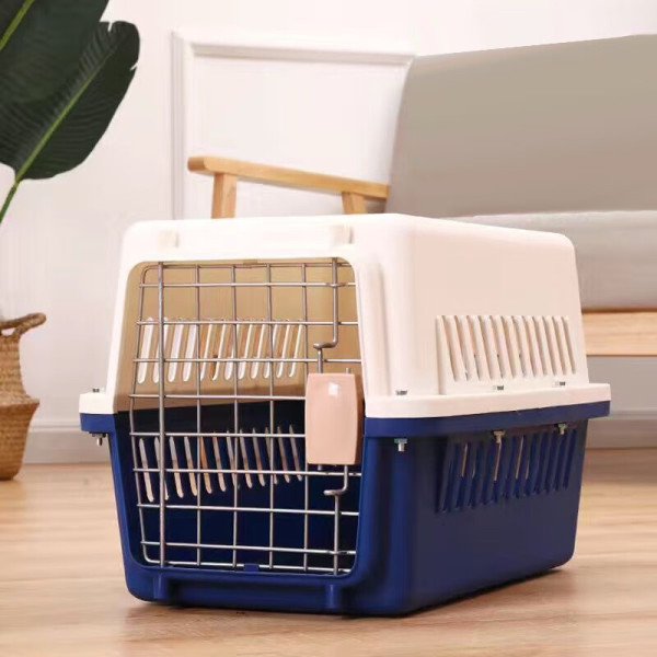 宠物码头 宠物航空箱猫咪空运包猫笼外出猫笼子猫包大号拉杆箱 蓝色(三号)40斤内爱宠