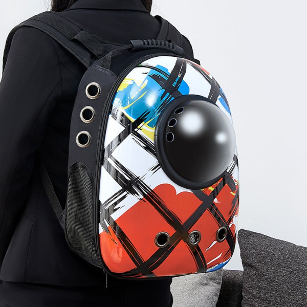 宠物码头 猫包外出宠物包猫背包双肩包航空小号太空包猫袋猫咪狗狗出行透气 黑底涂鸦
