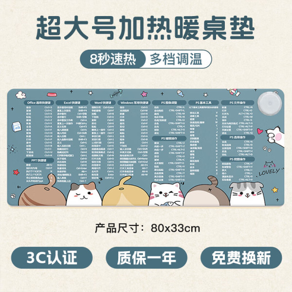 金陵声宝 加热鼠标垫 暖桌垫 超大号办公室电脑桌面保暖桌垫写字暖手垫冬季保暖80*33CM快捷键肥仔喵