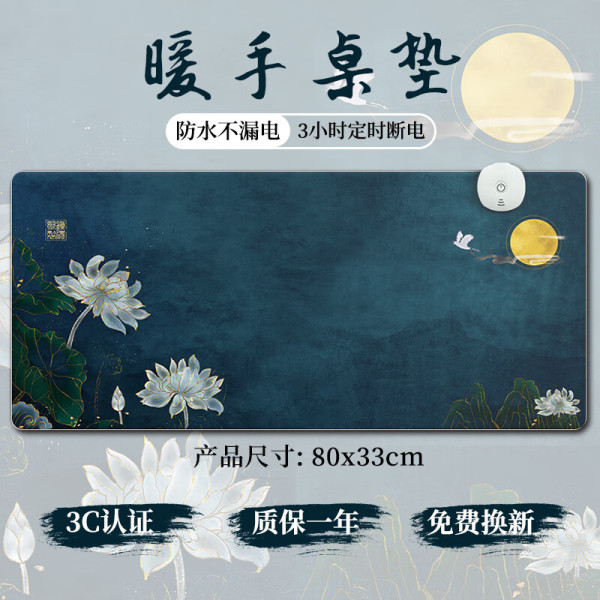 金陵声宝 加热鼠标垫暖桌垫办公室发热暖手垫学生写字台保暖桌垫键盘垫冬季神器超大号宫廷风月影荷香80*33CM