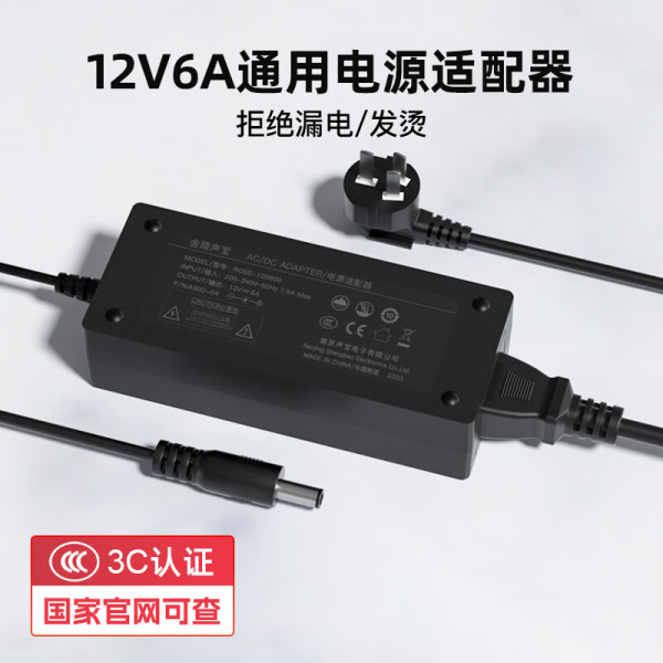 金陵声宝 SNBMW 12V6A电源适配器LED液晶显示器电源线硬盘盒监控打印机按摩椅录像机72W电源5.5*2.5mm