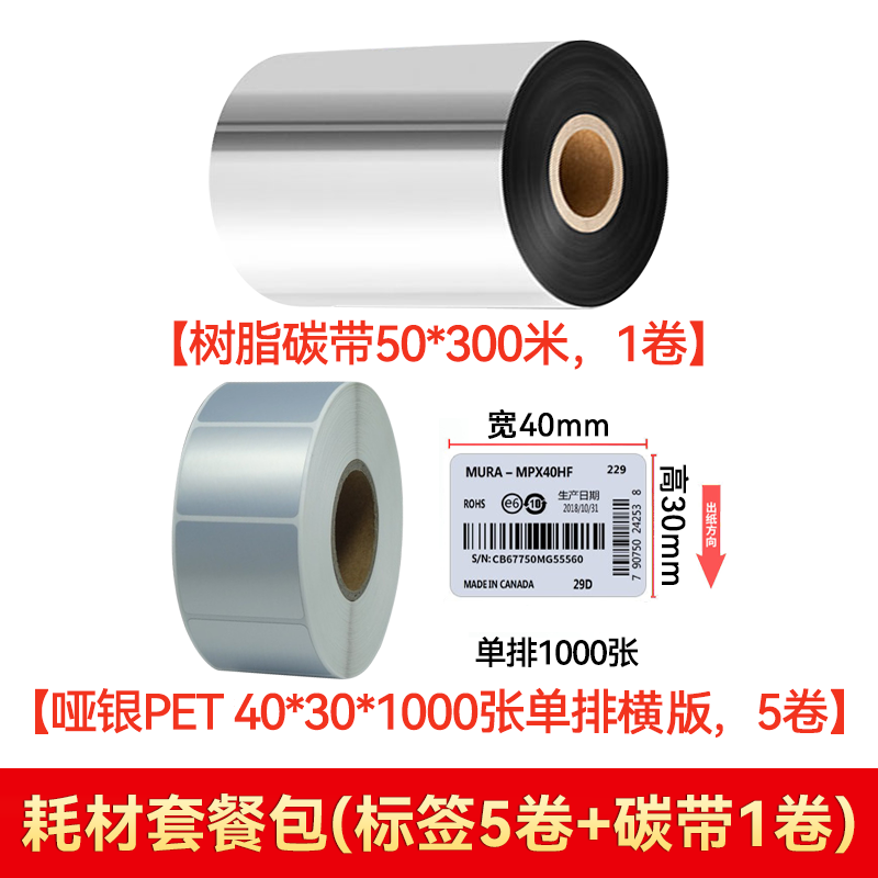 zenpert 4T200升级版 zenpert4T520/4T530不干胶标签二维码水洗唛吊牌固定资产合格证铭牌多功能打印机 4T530耗材包(亚银标签五卷 树脂碳带一卷)