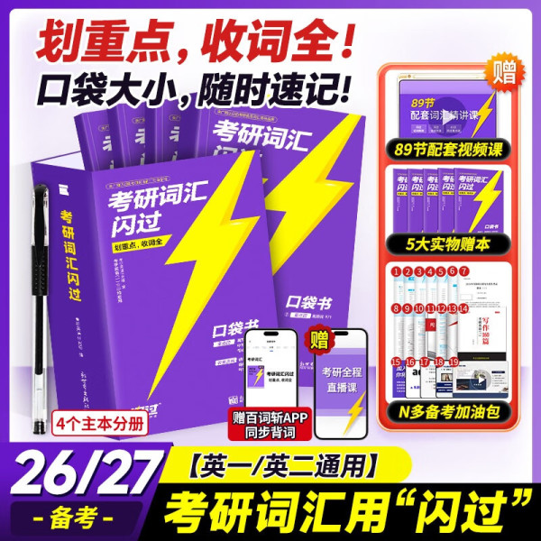 新世界出版社 2025考研词汇闪过考研英语一二词汇书单词本乱序版大纲5500高频词搭考研真相黄皮书全国通用 考研词汇闪过(送2本实物书)