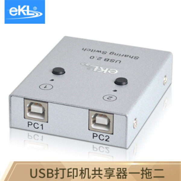eKL QH-02UA USB打印机共享器一拖二 2口多台电脑自动手动切换器2进2出1出方口线共享鼠标键盘
