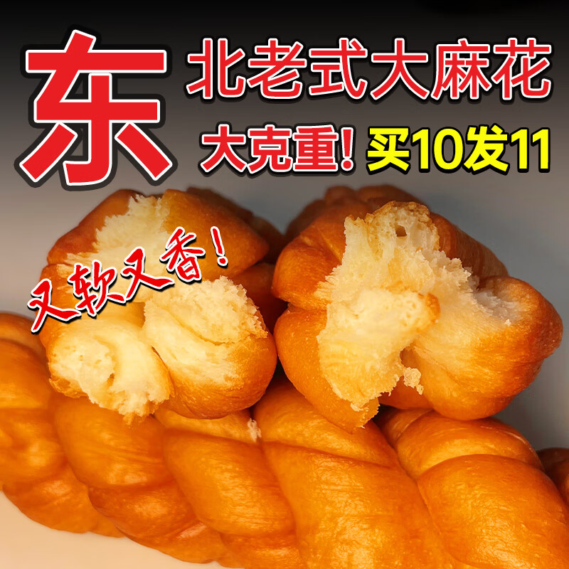 聚珍惠品48小时发货【买10根发11根】东北软麻花老式手撕大麻花软饼干糕点 老式大麻花190g1大根