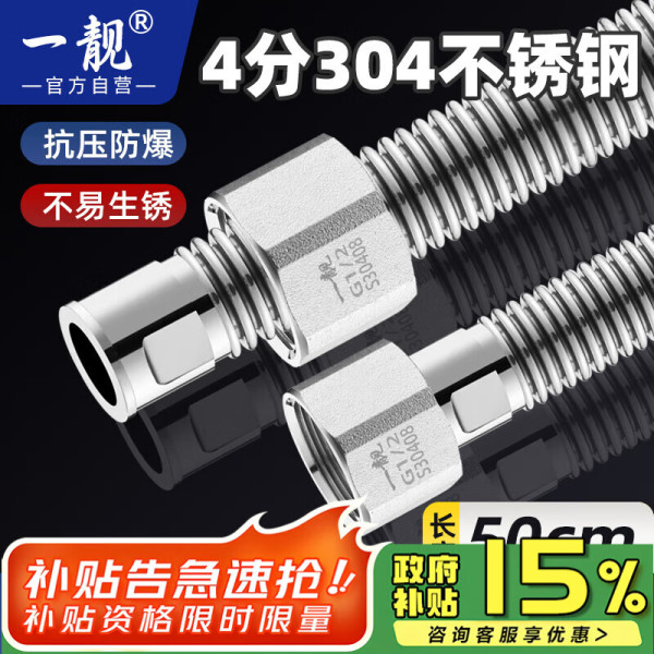 一靓 304不锈钢波纹管4分燃气热水器冷热进水软管加厚防爆管50CM1根
