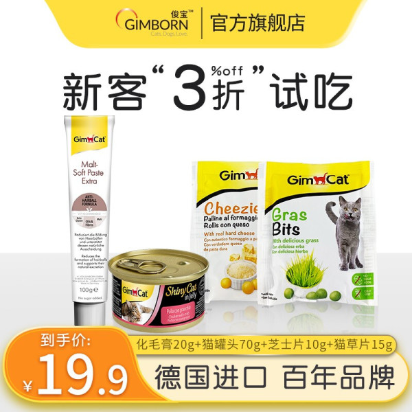 德国进口 俊宝化毛膏20g+猫罐头70g+猫草片芝士片