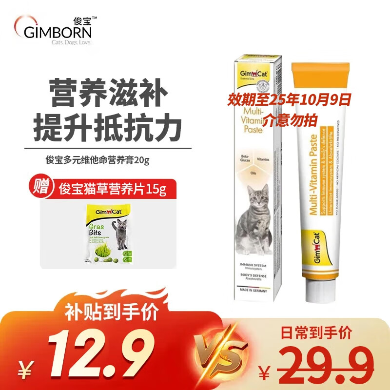 俊宝Gimcat 德国原装进口俊宝营养膏宠物猫用营养膏 营养膏20g