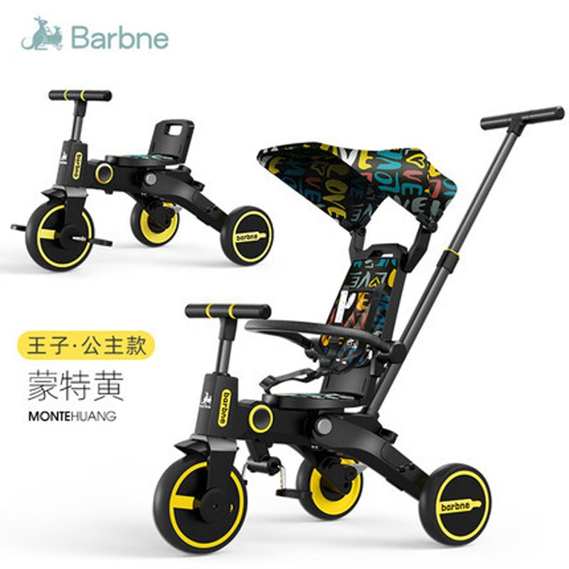 巴巴泥(barbne)儿童三轮车遛娃神器溜娃神车双向婴儿推车可折叠轻便多功能 蒙特黄【双向座椅 可折叠】