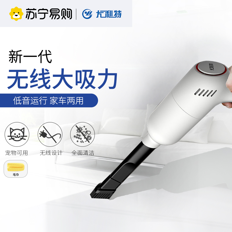 尤利特车载吸尘器车用无线充电汽车家用两用手持小型车内大功率强力[白色无地刷款 毛巾]