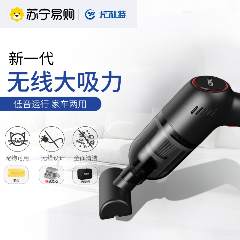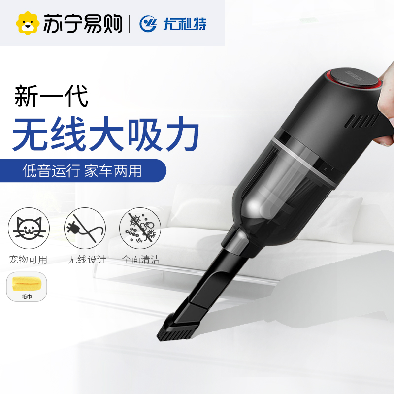 尤利特车载吸尘器车用无线充电汽车家用两用手持小型车内大功率强力[黑色无地刷款 毛巾]