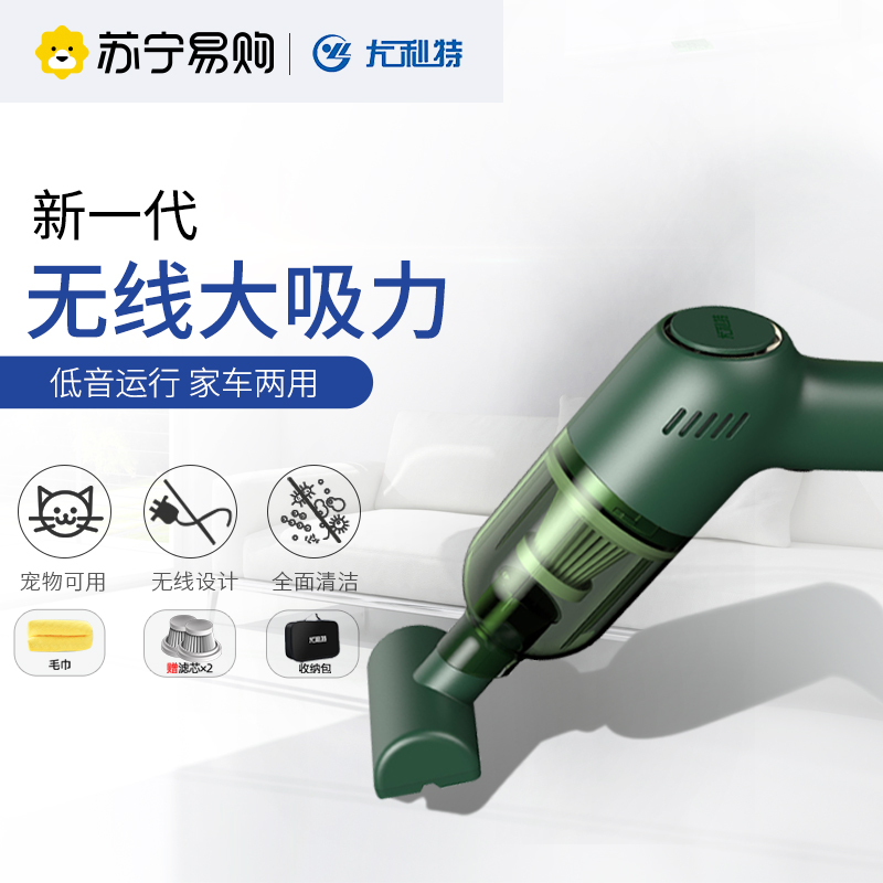 尤利特车载吸尘器车用无线充电汽车家用两用手持小型车内大功率强力[绿色地刷款 滤芯*2 毛巾 收纳包]