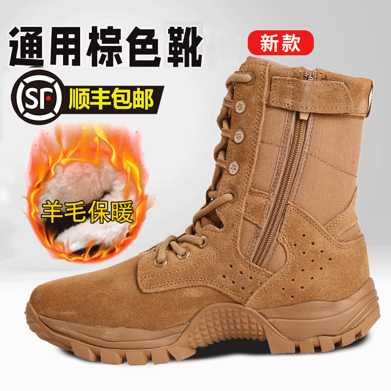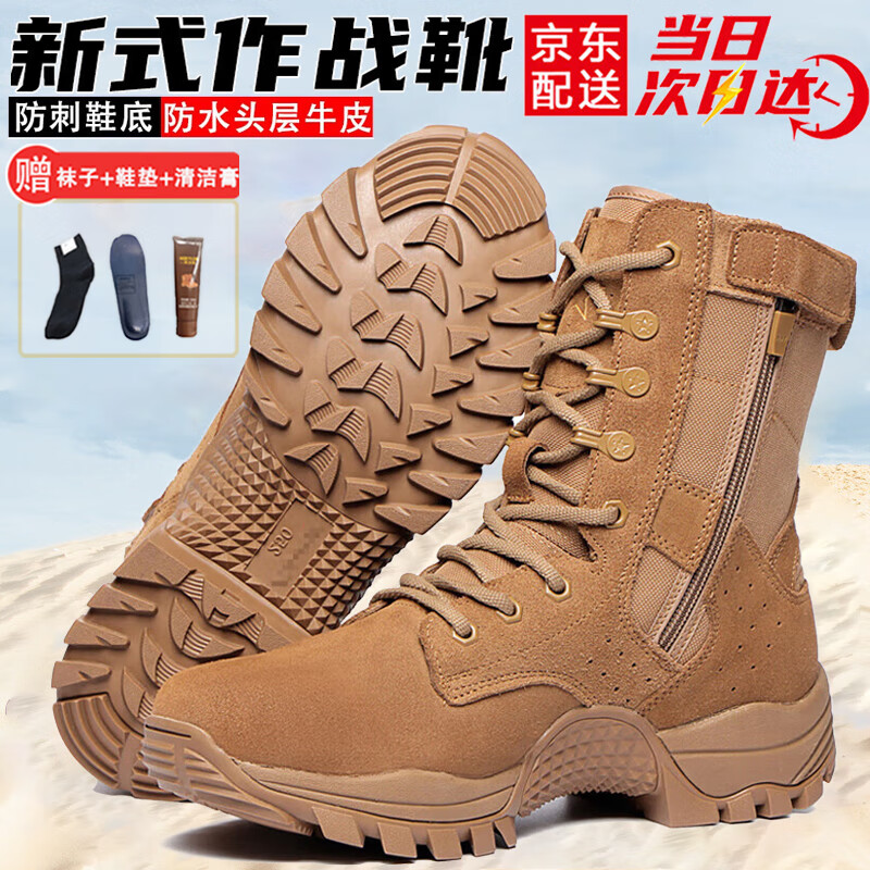 3066新式棕色作战靴男作战鞋超轻高帮侧拉链战术靴透气耐磨训练沙漠靴 棕色新式作战靴【高配 牛皮】 39 /245(原厂正品 两双鞋垫)