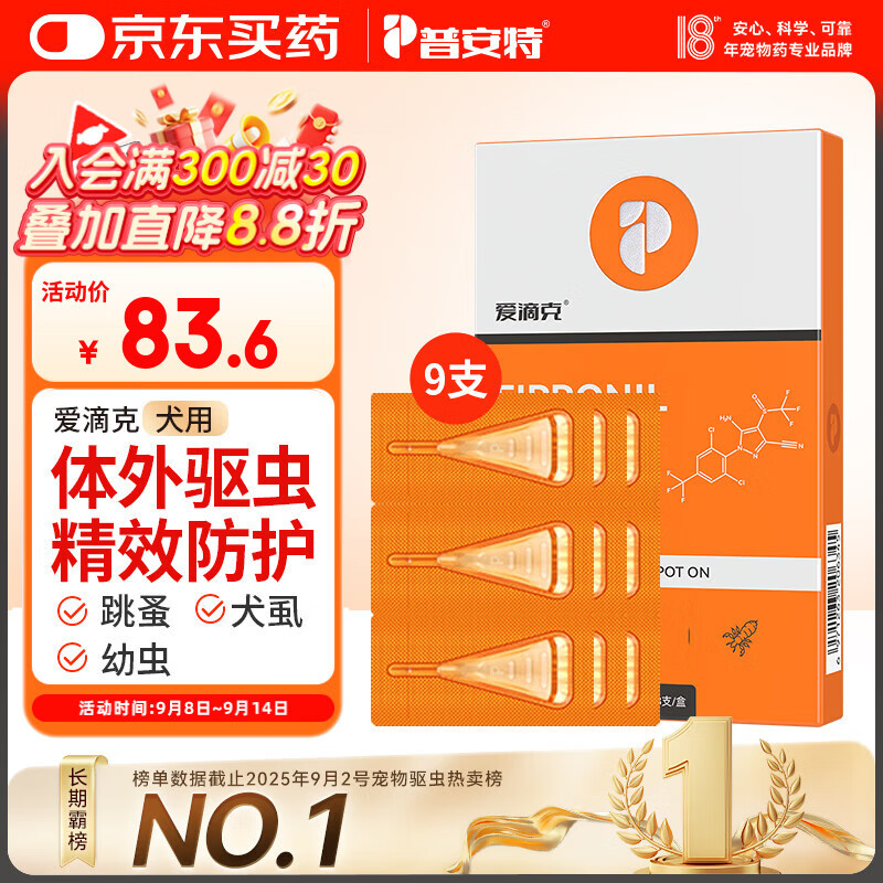 普安特宠物狗狗驱虫药体外驱虫滴剂跳蚤寄生虫驱虫药非泼罗尼爱滴克9支