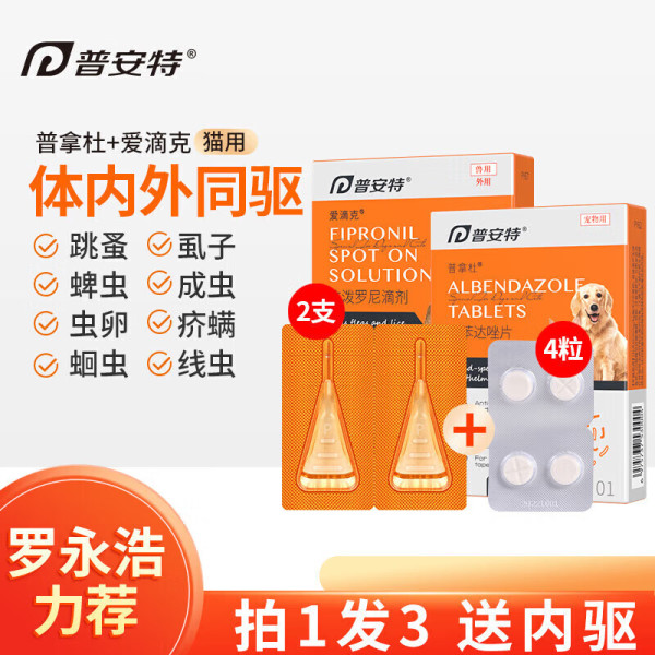 普安特宠物驱虫药猫咪驱虫体内外驱跳蚤犬虱非泼罗尼爱滴克 内驱