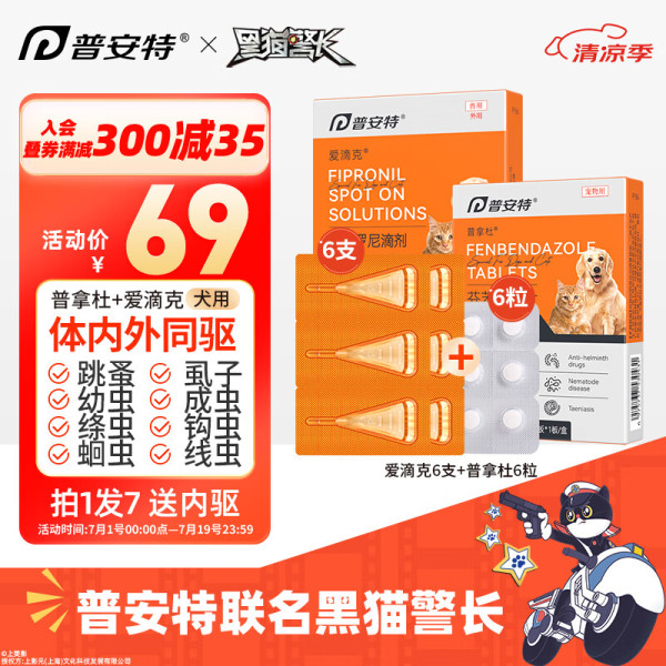 普安特宠物猫咪驱虫药体内外同驱幼猫驱虫跳蚤犬虱爱滴克非泼罗尼 内驱