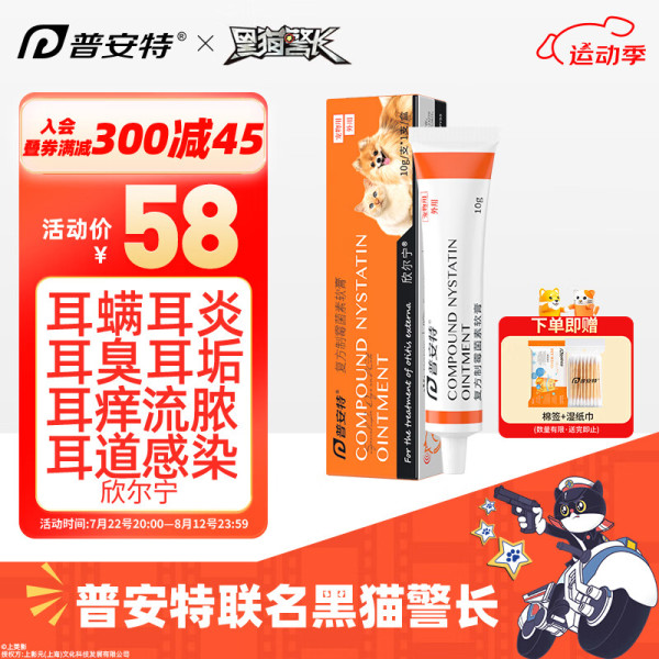 普安特 poainta 宠物猫咪耳螨狗狗猫咪耳炎耳痒耳臭耳红分泌物多耳道清洁真箘消炎复方制霉箘素软膏欣尔宁