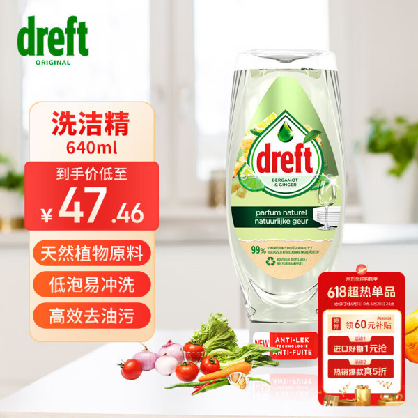 Dreft天然矿物质洗洁精餐具洗涤灵果蔬去油污食品用易冲洗无残留