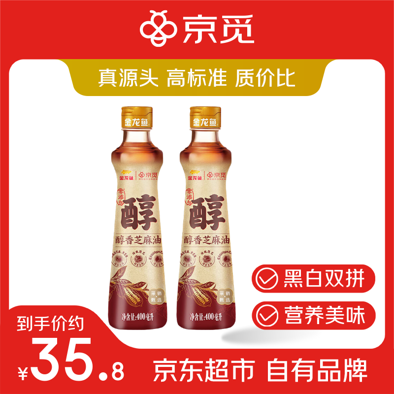 京觅X金龙鱼醇香芝麻香油400ml 【双支装】 融合黑白芝麻营养健康