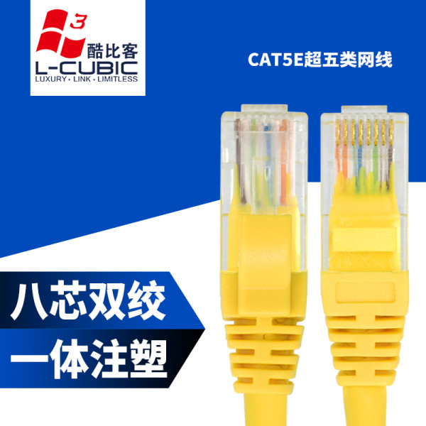 L-CUBIC 酷比客 超五类网线纯铜高速CAT5e类百兆网络连接线电脑网络跳线 黄色 1米