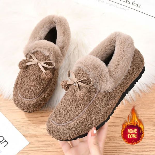 阿猫顿 冬季老北京布鞋棉鞋加绒加厚毛毛鞋保暖防滑中老鞋豆豆 咖色 37