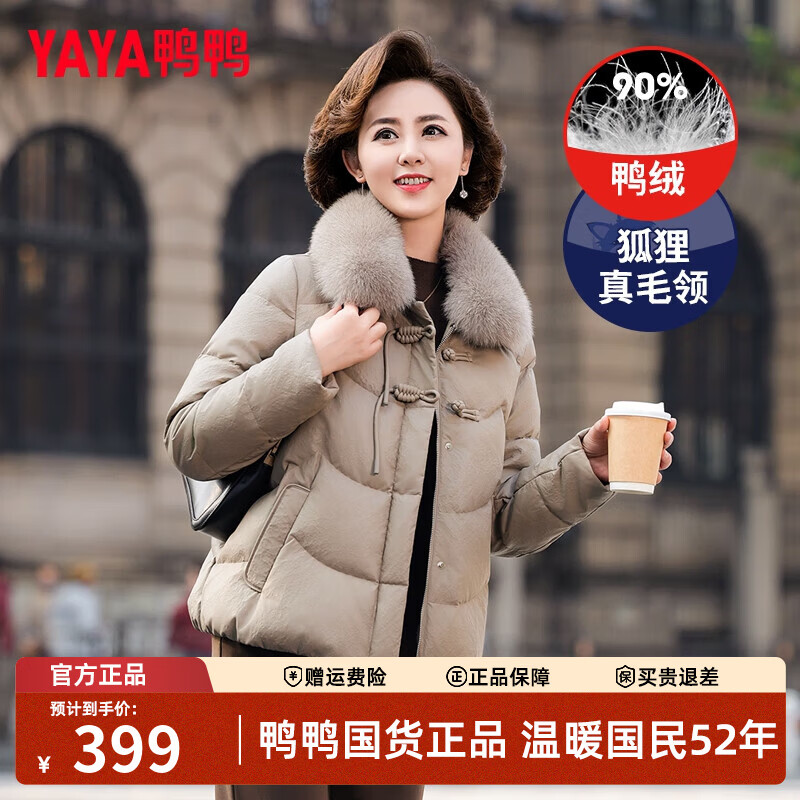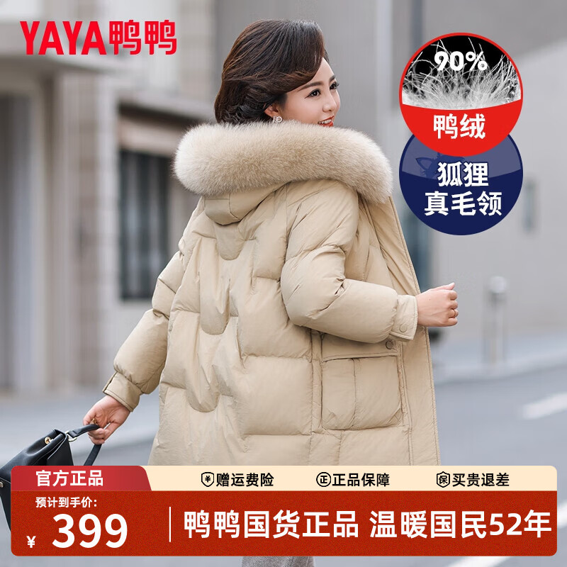 鸭鸭(YAYA)妈妈冬装羽绒服女中长款40岁50中年新款外套洋气中老年人女装衣服 YE4B612452Q卡其灰色 4XL (建议145-160斤)