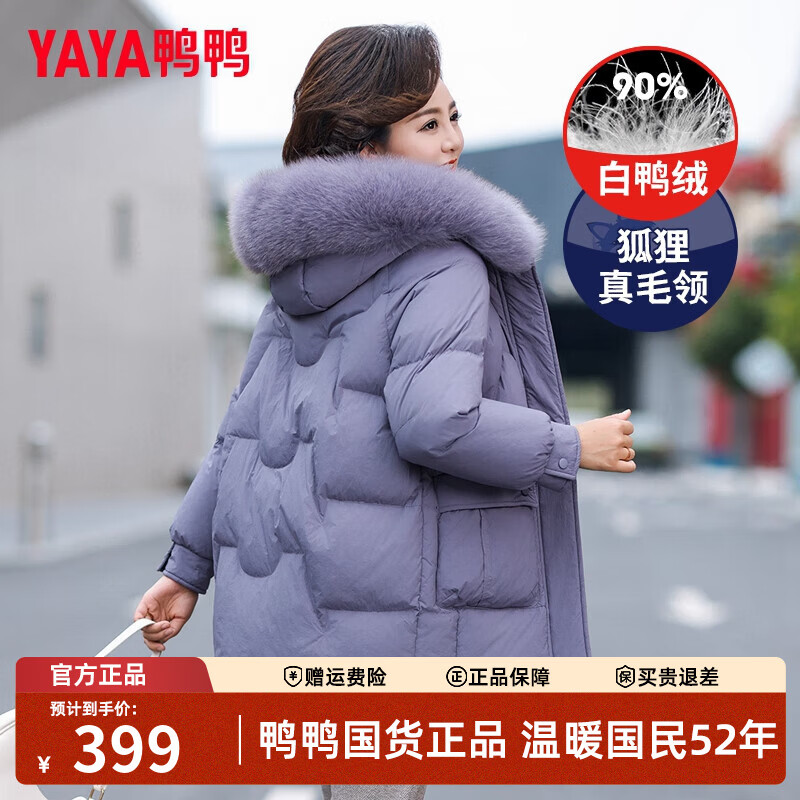 鸭鸭(YAYA)妈妈冬装羽绒服女中长款40岁50中年新款外套洋气中老年人女装衣服 YE3B605542Q紫色 L (建议80-100斤)