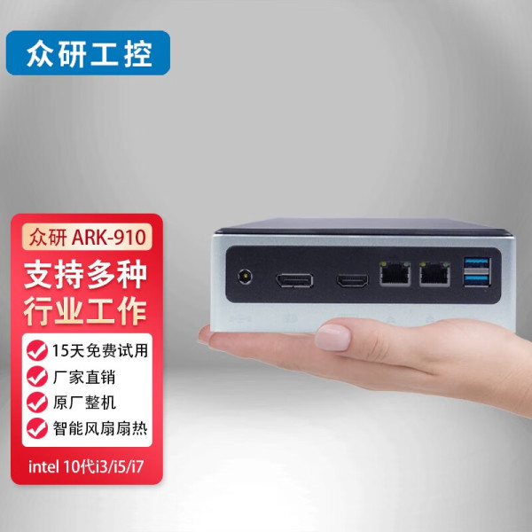 众研 ARK-910 嵌入式MINI迷你主机 主动式散热 365天不间断运行 i5-10310U/8G/256 固态 迷你 i5-10310U/8G/256 固态